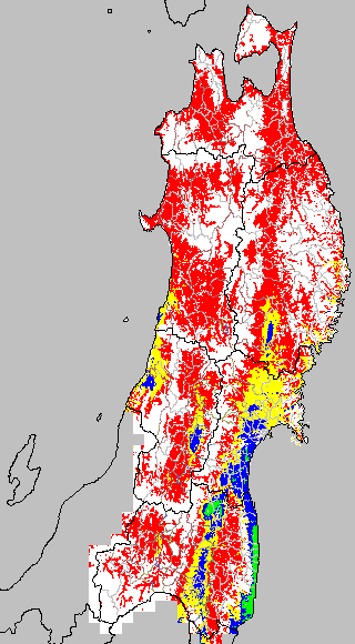 安全作期の策定にある気温指標のうち、稚苗移植の安全早限日の気温指標12.0℃を用いて表示しています。12.0℃以下については1℃刻みで表示し、可能域がどのように推移するかをみるものです。