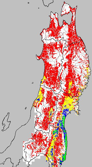安全作期の策定にある気温指標のうち、稚苗移植の安全早限日の気温指標12.0℃を用いて表示しています。12.0℃以下については1℃刻みで表示し、可能域がどのように推移するかをみるものです。