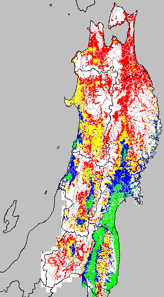 安全作期の策定にある気温指標のうち、夏作物の生育可能な気温指標10℃を用いて表示しています。10℃以下については1℃刻みで表示し、可能域がどのように推移するかをみるものです。