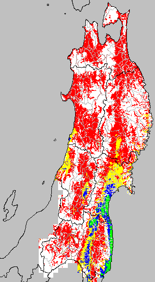 安全作期の策定にある気温指標のうち、湛水直播の安全早限日の気温指標11.5℃を用いて表示しています。11.5℃以下については1℃刻みで表示し、可能域がどのように推移するかをみるものです。