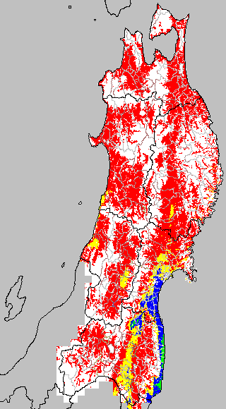 安全作期の策定にある気温指標のうち、稚苗移植の安全早限日の気温指標12.0℃を用いて表示しています。12.0℃以下については1℃刻みで表示し、可能域がどのように推移するかをみるものです。