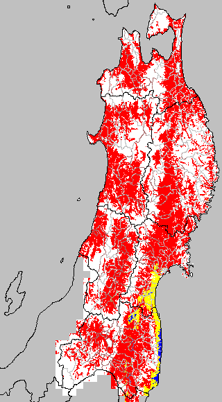 安全作期の策定にある気温指標のうち、中苗・成苗移植の安全早限日の気温指標13.0℃を用いて表示しています。13.0℃以下については1℃刻みで表示し、可能域がどのように推移するかをみるものです。
