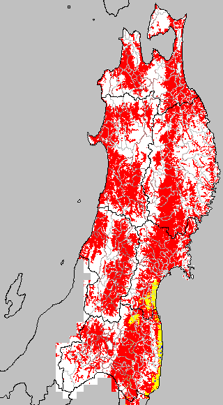 安全作期の策定にある気温指標のうち、乾田直播の安全早限日の気温指標13.5℃を用いて表示しています。13.5℃以下については1℃刻みで表示し、可能域がどのように推移するかをみるものです。