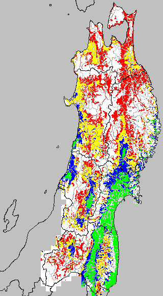 安全作期の策定にある気温指標のうち、夏作物の生育可能な気温指標10℃を用いて表示しています。10℃以下については1℃刻みで表示し、可能域がどのように推移するかをみるものです。
