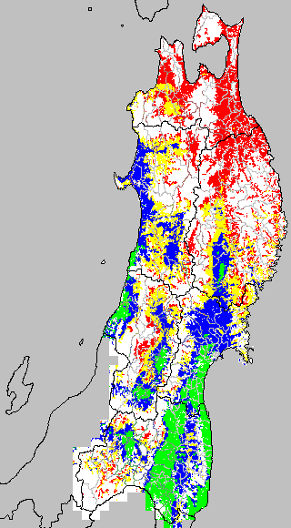 安全作期の策定にある気温指標のうち、稚苗移植の安全早限日の気温指標12.0℃を用いて表示しています。12.0℃以下については1℃刻みで表示し、可能域がどのように推移するかをみるものです。