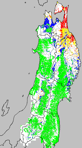 安全作期の策定にある気温指標のうち、夏作物の生育可能な気温指標10℃を用いて表示しています。10℃以下については1℃刻みで表示し、可能域がどのように推移するかをみるものです。