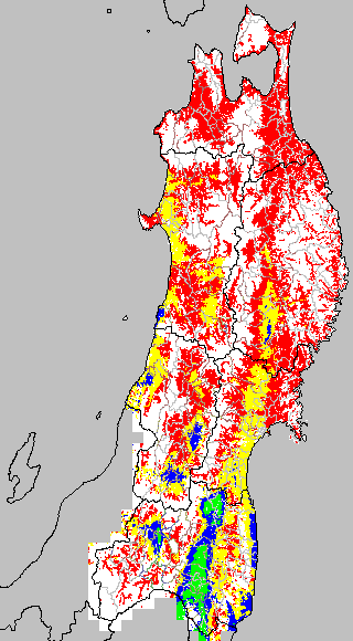安全作期の策定にある気温指標のうち、乾田直播の安全早限日の気温指標13.5℃を用いて表示しています。13.5℃以下については1℃刻みで表示し、可能域がどのように推移するかをみるものです。