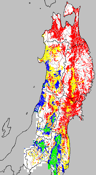 安全作期の策定にある気温指標のうち、乾田直播の安全早限日の気温指標13.5℃を用いて表示しています。13.5℃以下については1℃刻みで表示し、可能域がどのように推移するかをみるものです。