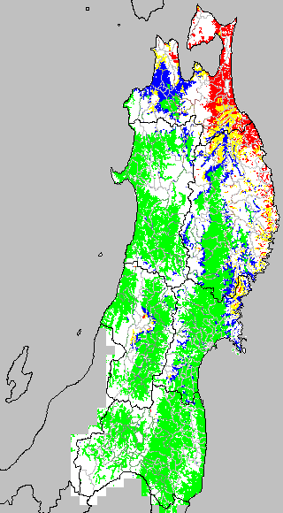 安全作期の策定にある気温指標のうち、湛水直播の安全早限日の気温指標11.5℃を用いて表示しています。11.5℃以下については1℃刻みで表示し、可能域がどのように推移するかをみるものです。