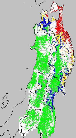 安全作期の策定にある気温指標のうち、稚苗移植の安全早限日の気温指標12.0℃を用いて表示しています。12.0℃以下については1℃刻みで表示し、可能域がどのように推移するかをみるものです。
