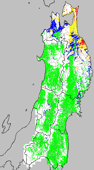 安全作期の策定にある気温指標のうち、稚苗移植の安全早限日の気温指標12.0℃を用いて表示しています。12.0℃以下については1℃刻みで表示し、可能域がどのように推移するかをみるものです。