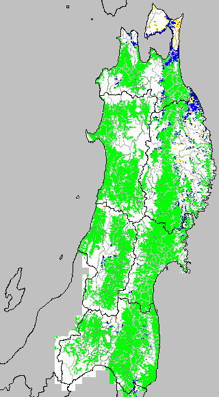 安全作期の策定にある気温指標のうち、乾田直播の安全早限日の気温指標13.5℃を用いて表示しています。13.5℃以下については1℃刻みで表示し、可能域がどのように推移するかをみるものです。