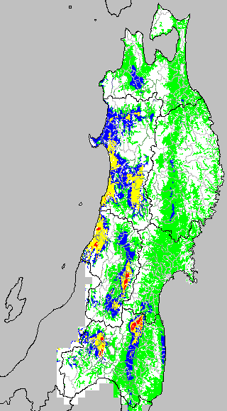 安全作期の策定にある気温指標のうち、いもち病蔓延可能日の平均気温指標20.0℃を用いて表示し、20.0℃未満については1℃刻みで表示します。過去7日の移動平均値で示しています。いもち病の蔓延可能域を監視するものです。葉いもち発生予察メッシュと併せてご覧ください。