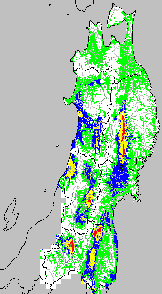 安全作期の策定にある気温指標のうち、いもち病蔓延可能日の平均気温指標20.0℃を用いて表示し、20.0℃未満については1℃刻みで表示します。過去7日の移動平均値で示しています。いもち病の蔓延可能域を監視するものです。葉いもち発生予察メッシュと併せてご覧ください。