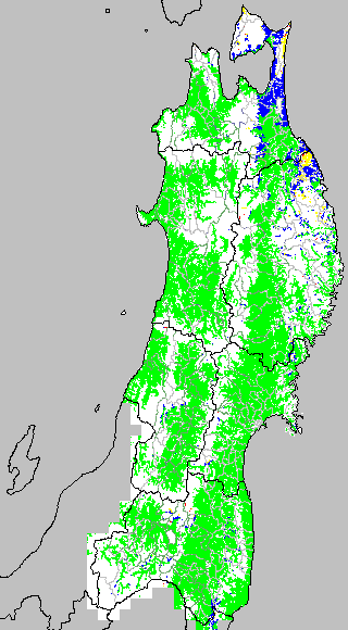 各種文献などを参考にして、草丈・根の伸長に関する限界温度を平均気温で13℃と設定し、13℃以上については1℃刻みで表示します。過去7日の移動平均値で示す。草丈や根の伸長が遅延すると予想される地域を監視するものです。