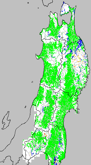 各種文献などを参考にして、分げつ形成に関する限界温度を平均気温で15℃と設定し、15℃以上については1℃刻みで表示します。過去7日の移動平均値で示す。分げつの形成が遅延すると予想される地域を監視するものです。