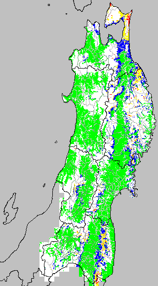 冷却量は((日平均気温−20℃)の積算値)で得られる指標である。この値が負でかつ数値が大きいほど低温の程度が大きくなり、低温被害が大きくなると推定される。この気温指標は前7日間の移動平均値を基に変換して示す。