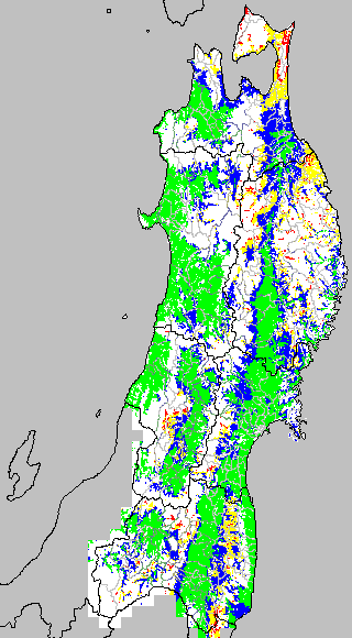 この時期平均気温が20℃以下になると、低温障害が発生しやすくなる。そこで、20℃を限界気温として、深水管理の必要な地域を特定する。また、平均気温が20〜21℃の地域も特に前歴深水管理を行う方が望ましい。この気温指標は前7日間の移動平均値で示す。