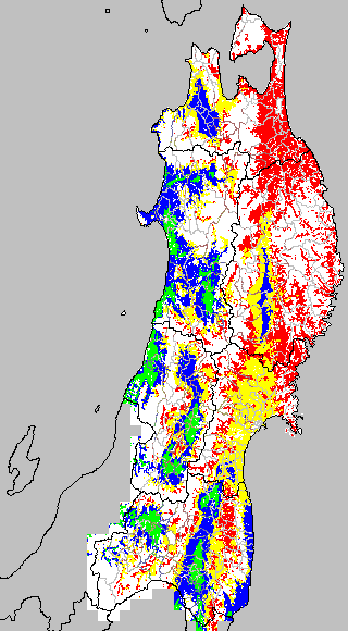 この時期平均気温が20℃以下になると、低温障害が発生しやすくなる。そこで、20℃を限界気温として、深水管理の必要な地域を特定する。また、平均気温が20〜21℃の地域も特に前歴深水管理を行う方が望ましい。この気温指標は前7日間の移動平均値で示す。