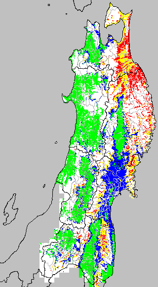 冷却量は((日平均気温−20℃)の積算値)で得られる指標である。この値が負でかつ数値が大きいほど低温の程度が大きくなり、低温被害が大きくなると推定される。この気温指標は前7日間の移動平均値を基に変換して示す。