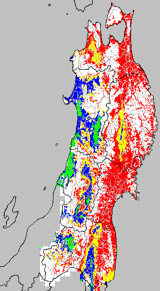この時期平均気温が20℃以下になると、低温障害が発生しやすくなる。そこで、20℃を限界気温として、深水管理の必要な地域を特定する。また、平均気温が20〜21℃の地域も特に前歴深水管理を行う方が望ましい。この気温指標は前7日間の移動平均値で示す。