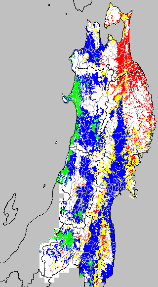 冷却量は((日平均気温−20℃)の積算値)で得られる指標である。この値が負でかつ数値が大きいほど低温の程度が大きくなり、低温被害が大きくなると推定される。この気温指標は前7日間の冷却量を積算して示す。