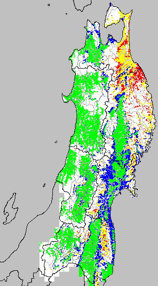 冷却量は((日平均気温−20℃)の積算値)で得られる指標である。この値が負でかつ数値が大きいほど低温の程度が大きくなり、低温被害が大きくなると推定される。この気温指標は前7日間の移動平均値を基に変換して示す。