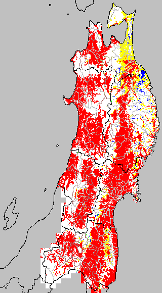 安全作期の策定にある気温指標のうち、いもち病蔓延可能日の平均気温指標20.0℃を用いて表示し、20.0℃未満については1℃刻みで表示します。過去7日の移動平均値で示しています。いもち病の蔓延可能域を監視するものです。葉いもち発生予察メッシュと併せてご覧ください。