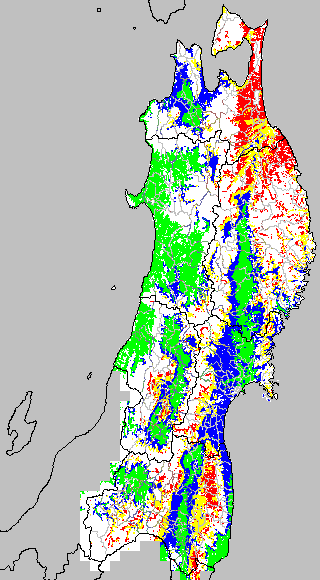 この時期平均気温が20℃以下になると、低温障害が発生しやすくなる。そこで、20℃を限界気温として、深水管理の必要な地域を特定する。また、平均気温が20〜21℃の地域も特に前歴深水管理を行う方が望ましい。この気温指標は前7日間の移動平均値で示す。