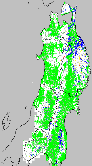 冷却量は((日平均気温−20℃)の積算値)で得られる指標である。この値が負でかつ数値が大きいほど低温の程度が大きくなり、低温被害が大きくなると推定される。この気温指標は前7日間の移動平均値を基に変換して示す。