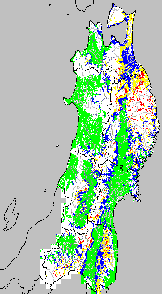 この時期平均気温が20℃以下になると、低温障害が発生しやすくなる。そこで、20℃を限界気温として、深水管理の必要な地域を特定する。また、平均気温が20〜21℃の地域も特に前歴深水管理を行う方が望ましい。この気温指標は前7日間の移動平均値で示す。
