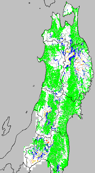 この時期平均気温が20℃以下になると、低温障害が発生しやすくなる。そこで、20℃を限界気温として、深水管理の必要な地域を特定する。また、平均気温が20〜21℃の地域も特に前歴深水管理を行う方が望ましい。この気温指標は前7日間の移動平均値で示す。
