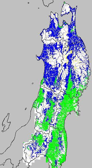 冷却量は((日平均気温−20℃)の積算値)で得られる指標である。この値が負でかつ数値が大きいほど低温の程度が大きくなり、低温被害が大きくなると推定される。この気温指標は前7日間の冷却量を積算して示す。