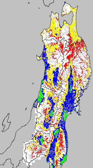 この時期平均気温が20℃以下になると、低温障害が発生しやすくなる。そこで、20℃を限界気温として、深水管理の必要な地域を特定する。また、平均気温が20〜21℃の地域も特に前歴深水管理を行う方が望ましい。この気温指標は前7日間の移動平均値で示す。