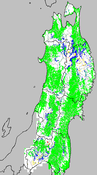 冷却量は((日平均気温−20℃)の積算値)で得られる指標である。この値が負でかつ数値が大きいほど低温の程度が大きくなり、低温被害が大きくなると推定される。この気温指標は前7日間の移動平均値を基に変換して示す。