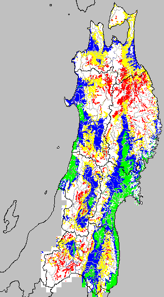 この時期平均気温が20℃以下になると、低温障害が発生しやすくなる。そこで、20℃を限界気温として、深水管理の必要な地域を特定する。また、平均気温が20〜21℃の地域も特に前歴深水管理を行う方が望ましい。この気温指標は前7日間の移動平均値で示す。