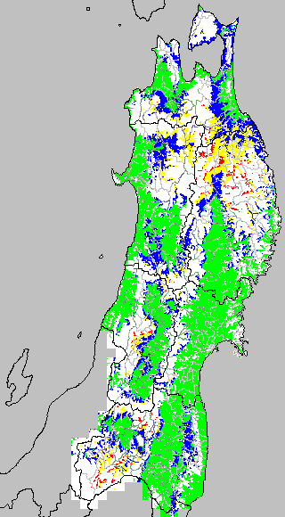 冷却量は((日平均気温−20℃)の積算値)で得られる指標である。この値が負でかつ数値が大きいほど低温の程度が大きくなり、低温被害が大きくなると推定される。この気温指標は前7日間の移動平均値を基に変換して示す。