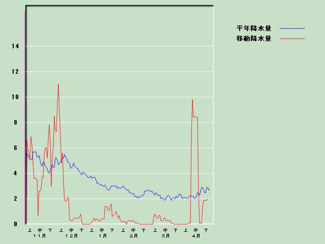 「鯵ケ沢」の降水量経過図[4月30日現在]