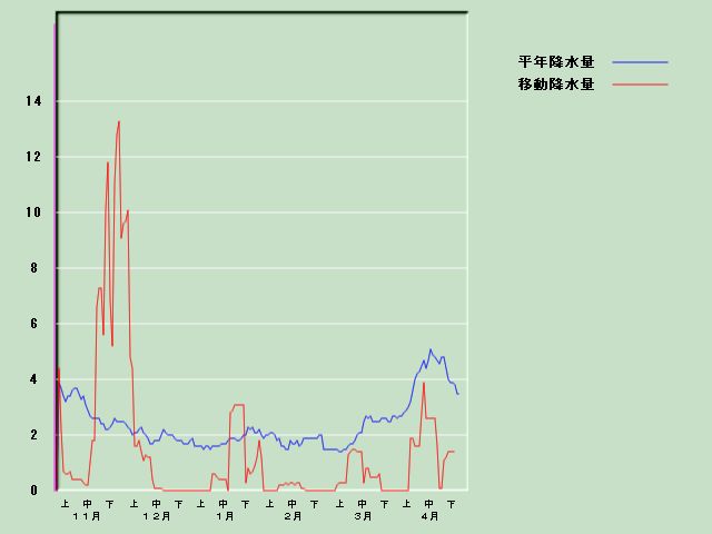 「北上」の降水量経過図[4月30日現在] 気温経過図 日照時間経過図