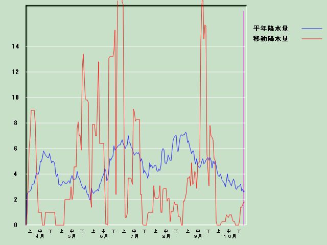 「築舘」の降水量経過図[11月1日現在] 気温経過図 日照時間経過図