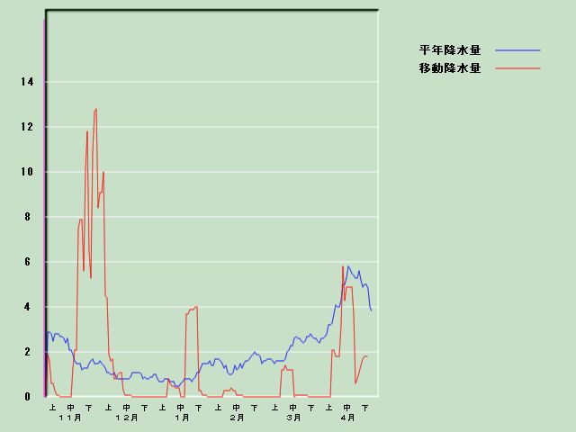 「築舘」の降水量経過図[4月30日現在] 気温経過図 日照時間経過図