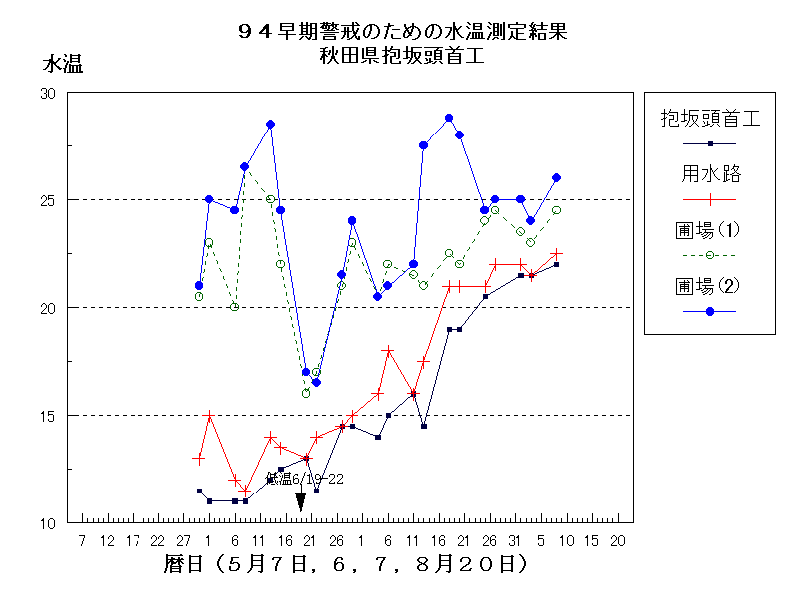秋田県1994年の水温経過