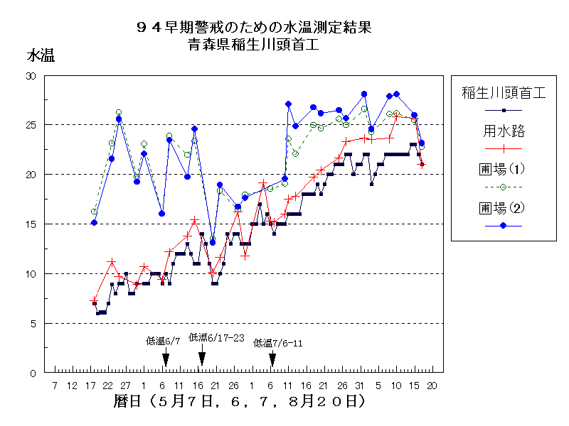 青森県1994年の水温経過