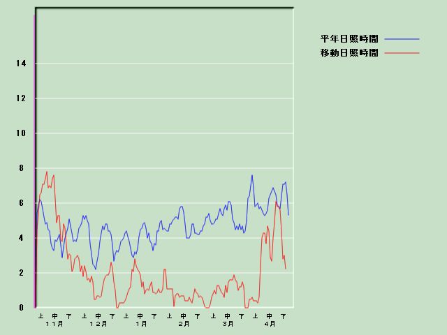 「白石」の日照経過図[4月30日現在] 気温経過図 降水量経過図