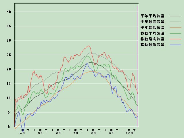 「蟹田」の気温経過図[11月1日現在] 降水量経過図 日照時間経過図