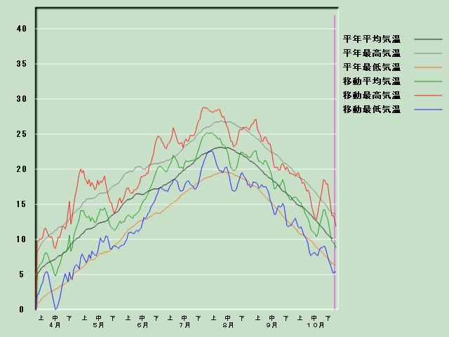 「鯵ケ沢」の気温経過図[11月1日現在]