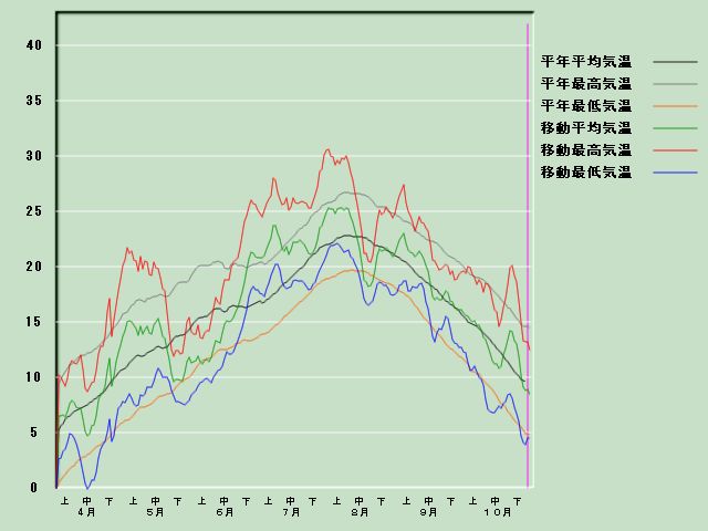 「八戸」の気温経過図[11月1日現在] 降水量経過図 日照時間経過図