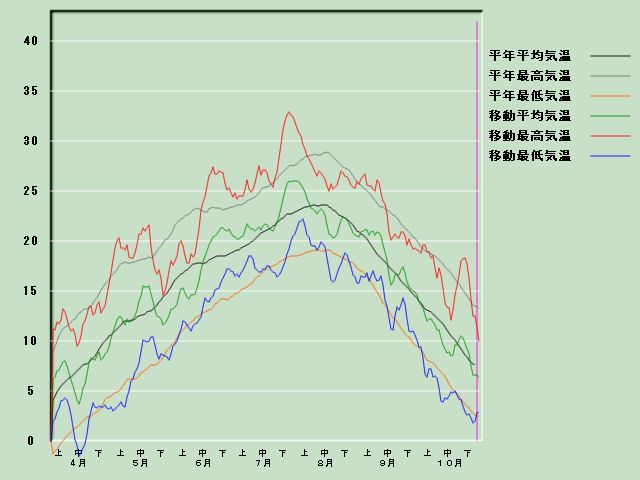 「鹿角」の気温経過図[11月1日現在] 降水量経過図 日照時間経過図