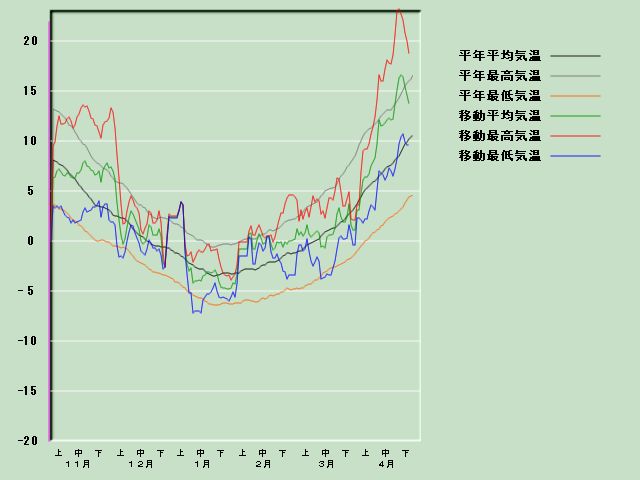 「阿仁合」の気温経過図[4月30日現在] 降水量経過図 日照時間経過図