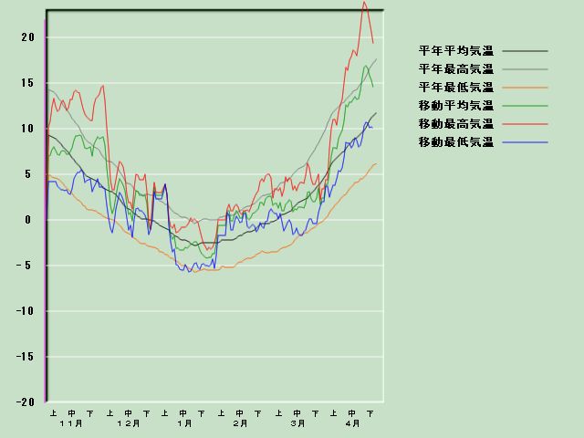 「横手」の気温経過図[4月30日現在] 降水量経過図 日照時間経過図